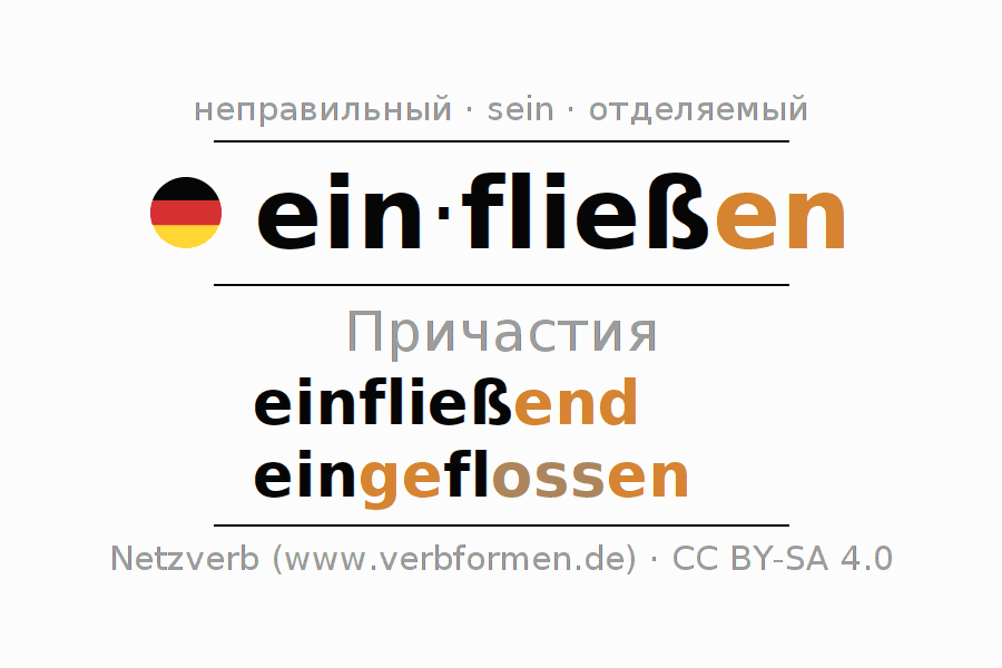 Формами причастия einfließen (вливаться, влиться) являются: {PARTIZIP 1}, {PARTIZIP 2}