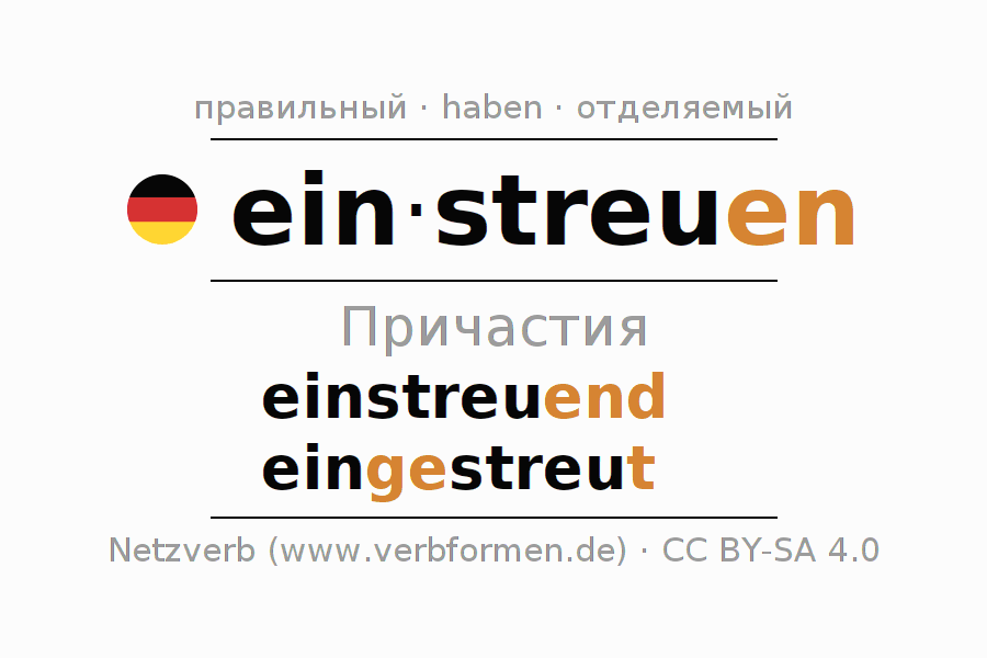 Примеры Действительный залог (актив) Партицип глагола einstreuen