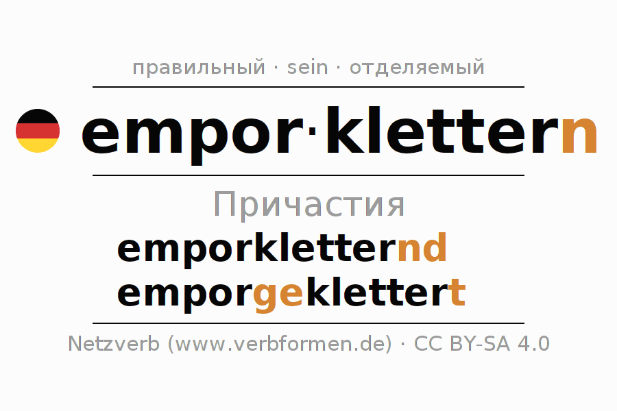 Формами причастия emporklettern (взбираться, подниматься) являются: {PARTIZIP 1}, {PARTIZIP 2}