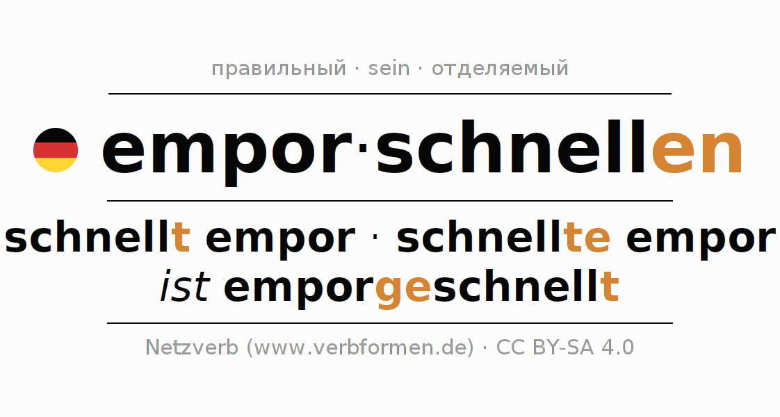 - Как спрягается emporschnellen в Презенс?
