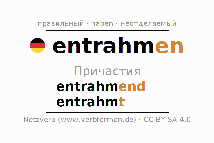 Формами причастия entrahmen (обезжиривать, отделение) являются: {PARTIZIP 1}, {PARTIZIP 2}