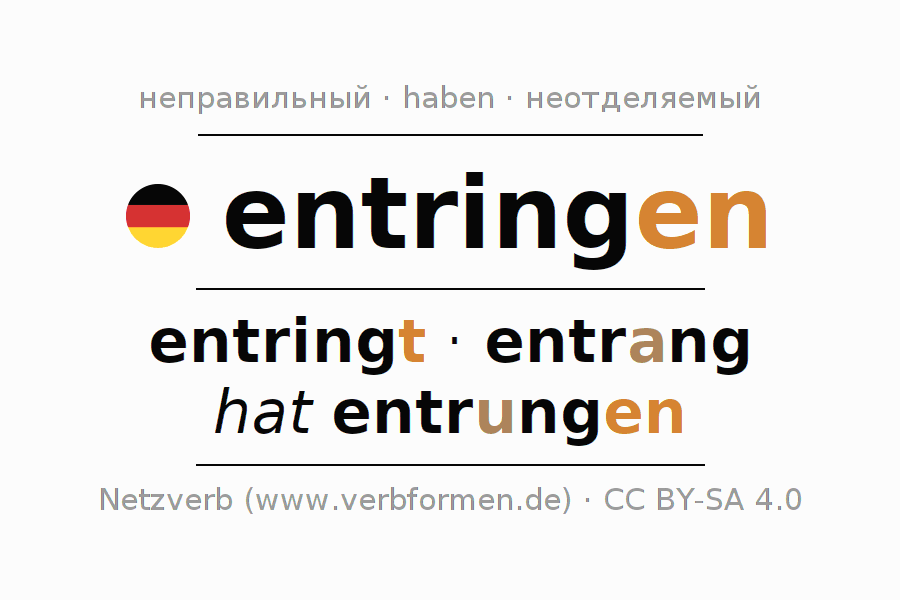 Формами причастия entringen (вырваться, вырываться) являются: {PARTIZIP 1}, {PARTIZIP 2}