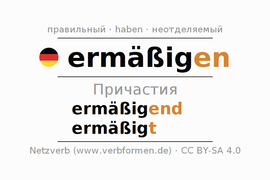 Формами причастия ermäßigen (снижать, снизить) являются: {PARTIZIP 1}, {PARTIZIP 2}