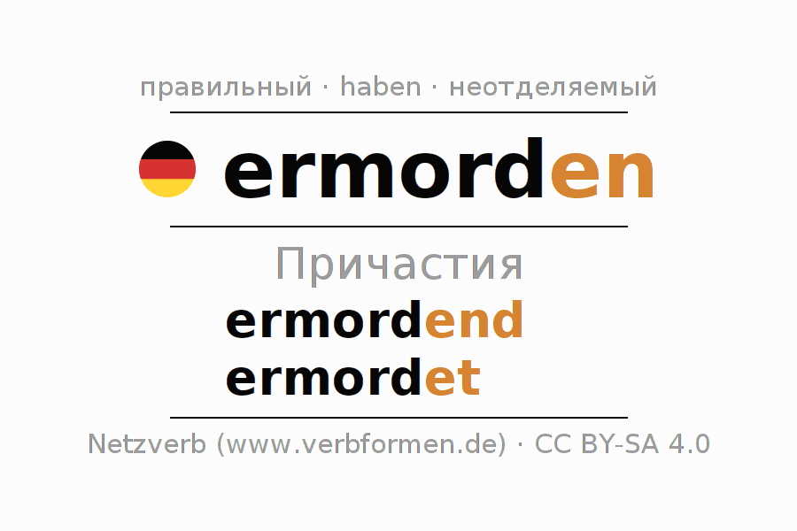 Этот глагол ermorden полностью спрягается во всех лицах и числах Партицип Презенс Перфект.