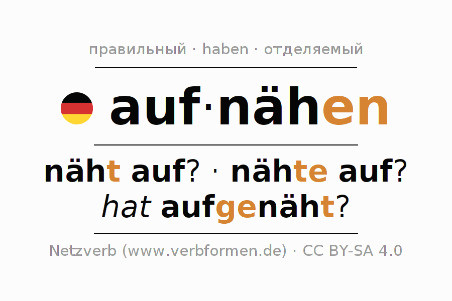 - Как спрягается aufnähen в Партицип?