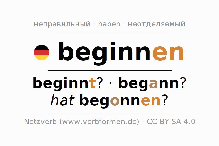 Примеры Действительный залог (актив) Партицип глагола beginnen