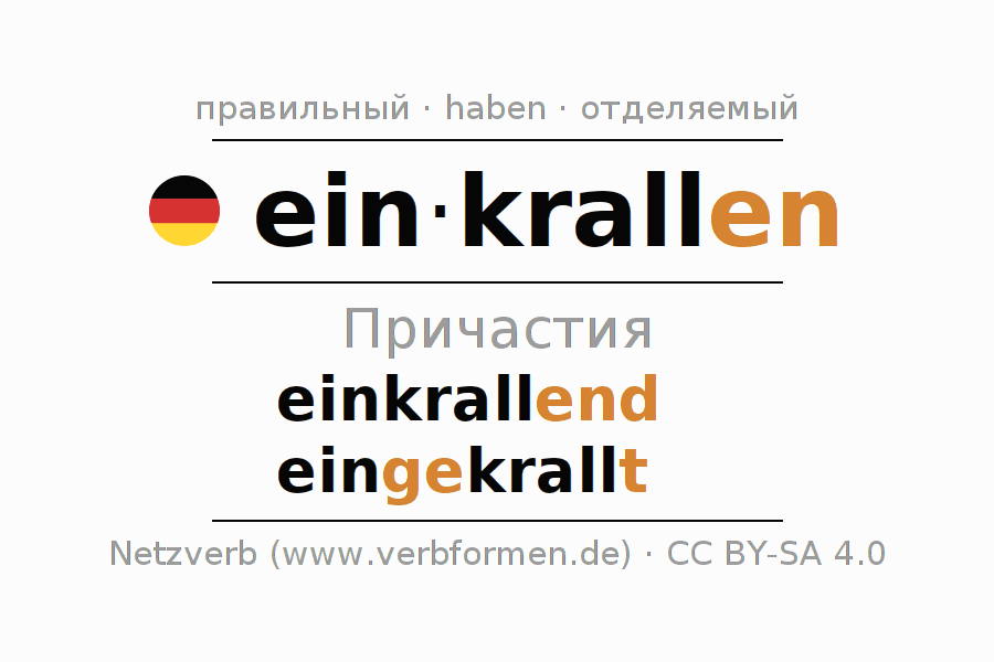 Этот глагол einkrallen полностью спрягается во всех лицах и числах Партицип Презенс Перфект.