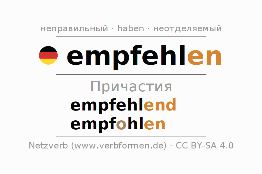 Примеры Действительный залог (актив) Партицип глагола empfehlen