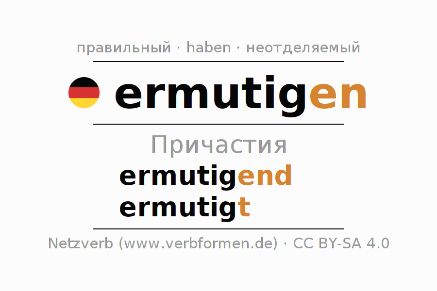 Этот глагол ermutigen полностью спрягается во всех лицах и числах Партицип Презенс Перфект.
