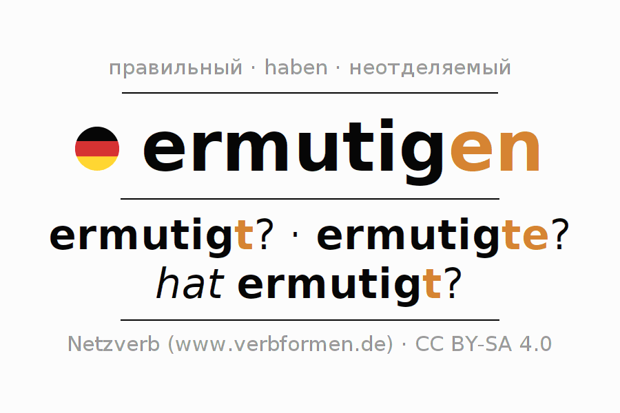 Примеры Действительный залог (актив) Партицип глагола ermutigen