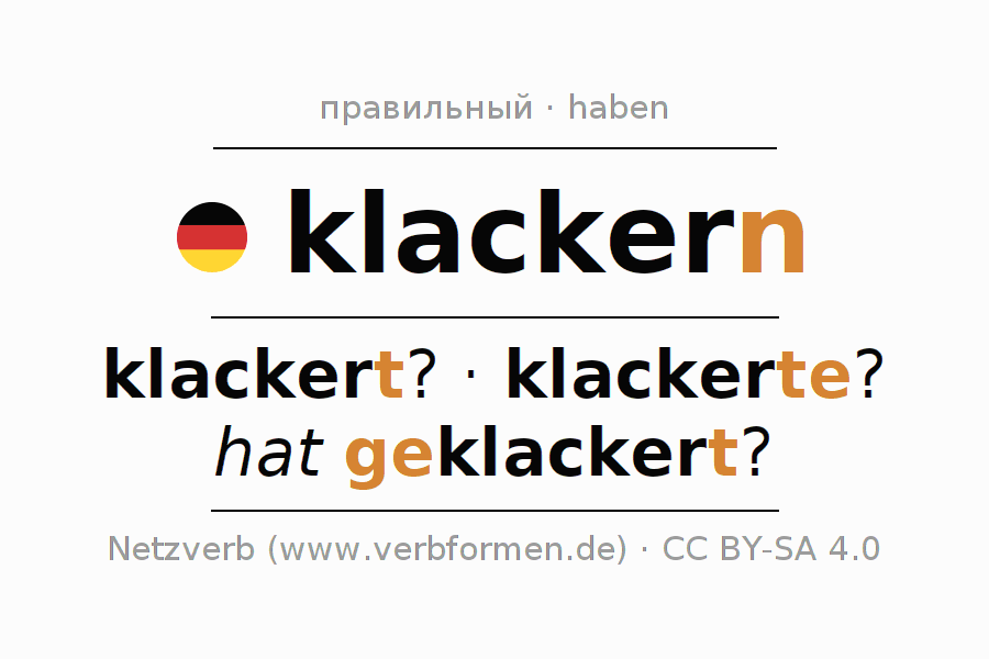 Этот глагол klackern полностью спрягается во всех лицах и числах Партицип Презенс Перфект.