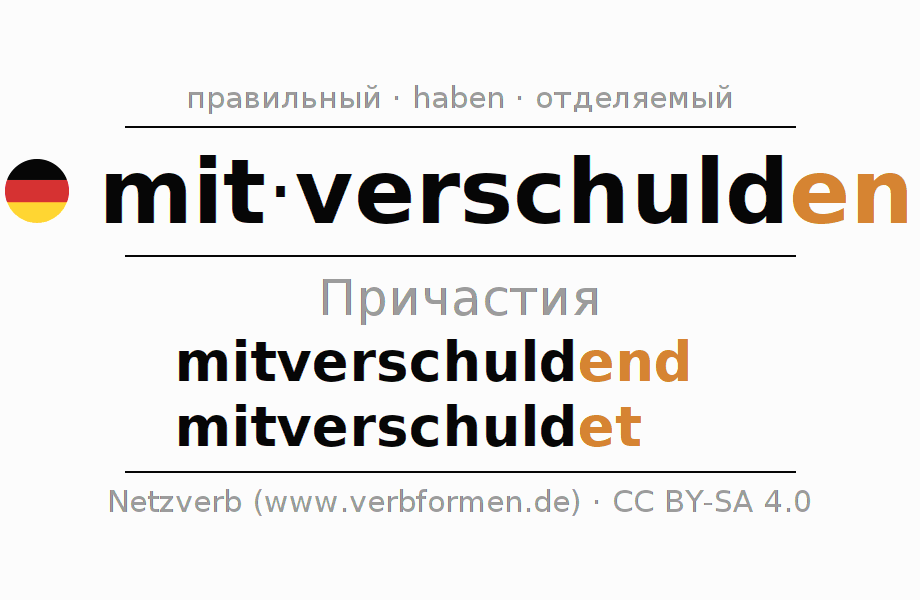 Этот глагол mitverschulden полностью спрягается во всех лицах и числах Партицип Презенс Перфект.