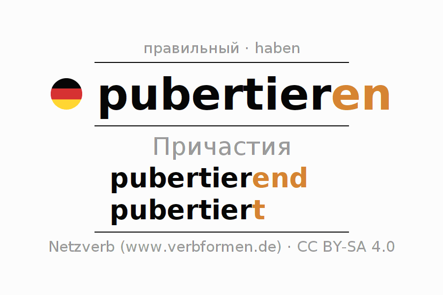 Этот глагол pubertieren полностью спрягается во всех лицах и числах Партицип Презенс Перфект.
