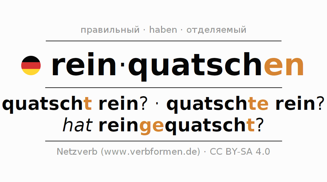 - Как спрягается reinquatschen в Партицип?