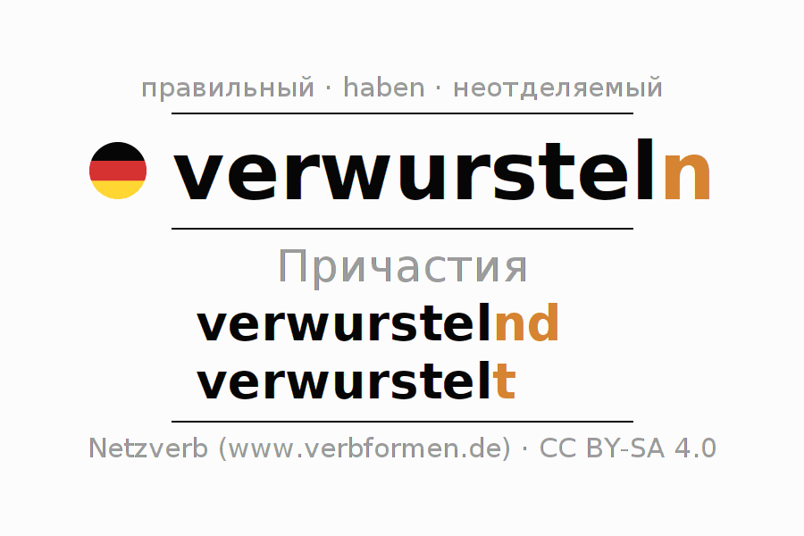 Этот глагол verwursteln полностью спрягается во всех лицах и числах Партицип Презенс Перфект.