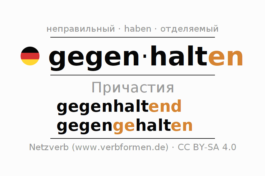 Формами причастия gegenhalten (противостоять, возражать) являются: {PARTIZIP 1}, {PARTIZIP 2}