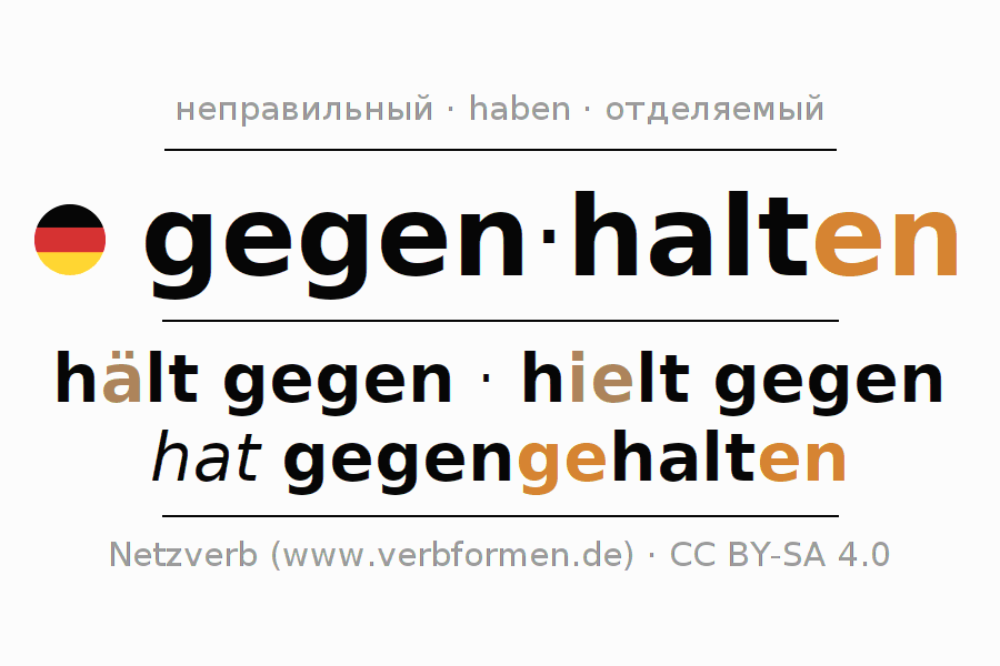 Этот глагол gegenhalten полностью спрягается во всех лицах и числах Партицип Презенс Перфект.