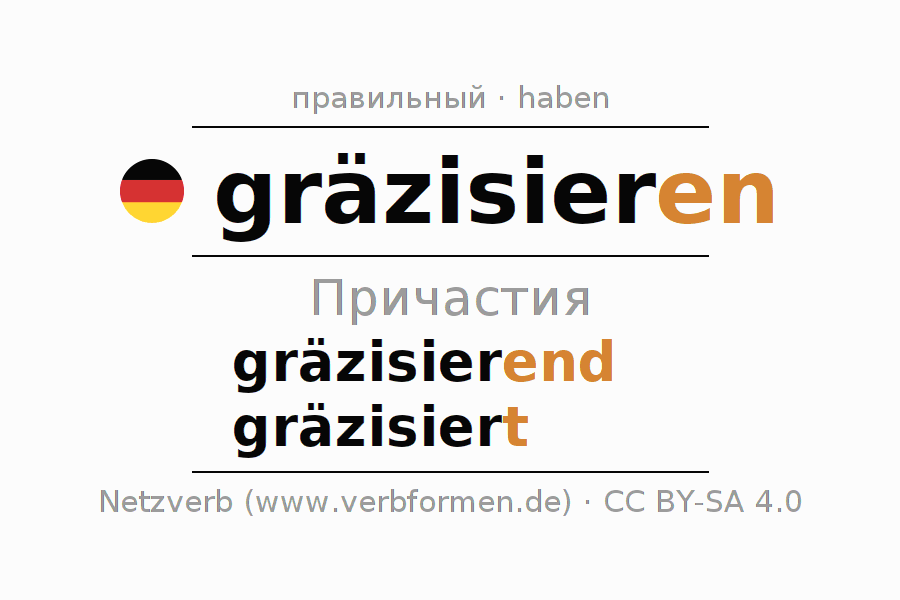 Формами причастия gräzisieren (греческий, греческий стиль) являются: {PARTIZIP 1}, {PARTIZIP 2}