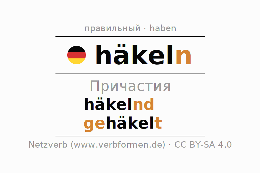 Формами причастия häkeln (вязать крючком, вязать) являются: {PARTIZIP 1}, {PARTIZIP 2}