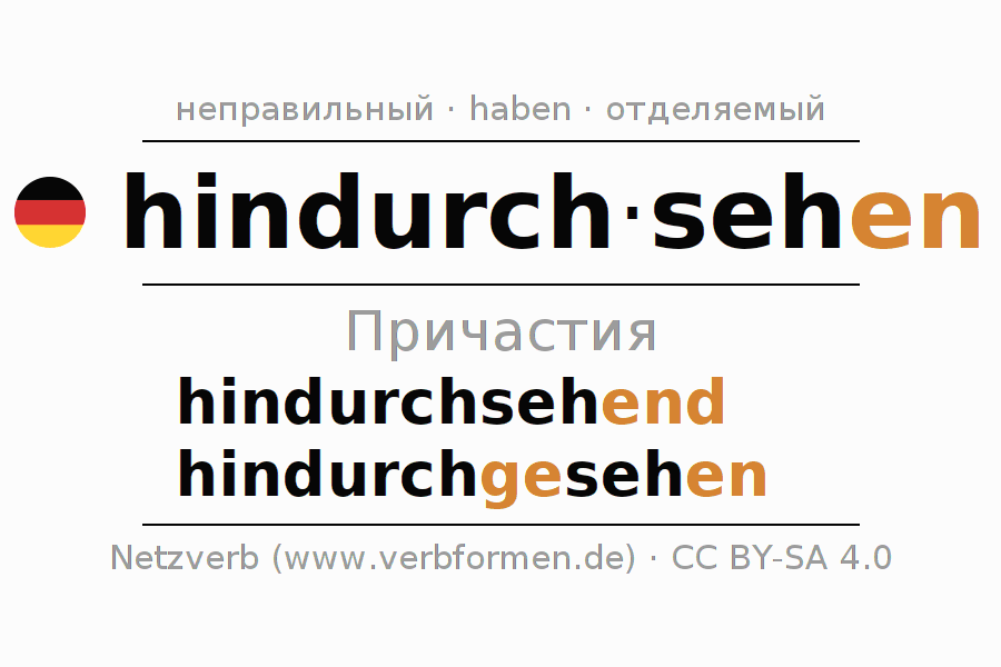 Формами причастия hindurchsehen (видеть сквозь, прозревать) являются: {PARTIZIP 1}, {PARTIZIP 2}
