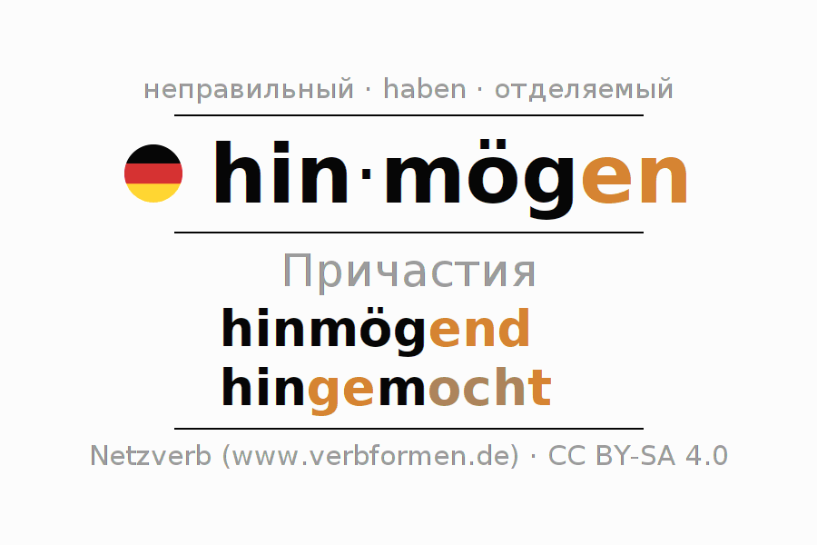 Формами причастия hinmögen (желание, тянуться) являются: {PARTIZIP 1}, {PARTIZIP 2}