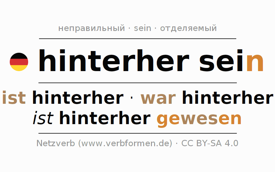 Этот глагол hinterhersein полностью спрягается во всех лицах и числах Партицип Презенс Перфект.