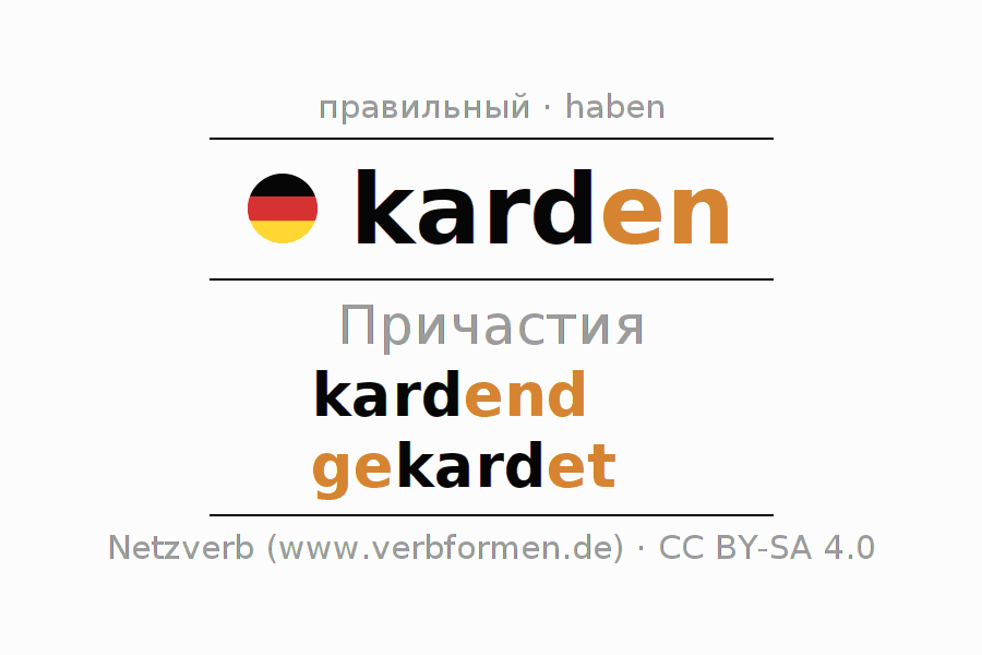 Формами причастия karden (кардан) являются: {PARTIZIP 1}, {PARTIZIP 2}