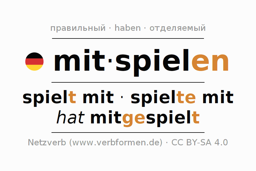 Примеры Действительный залог (актив) Партицип глагола mitspielen