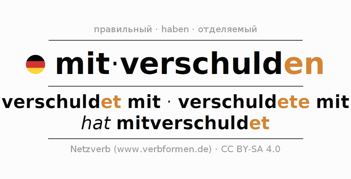 Формами причастия mitverschulden (вина, соучастие) являются: {PARTIZIP 1}, {PARTIZIP 2}