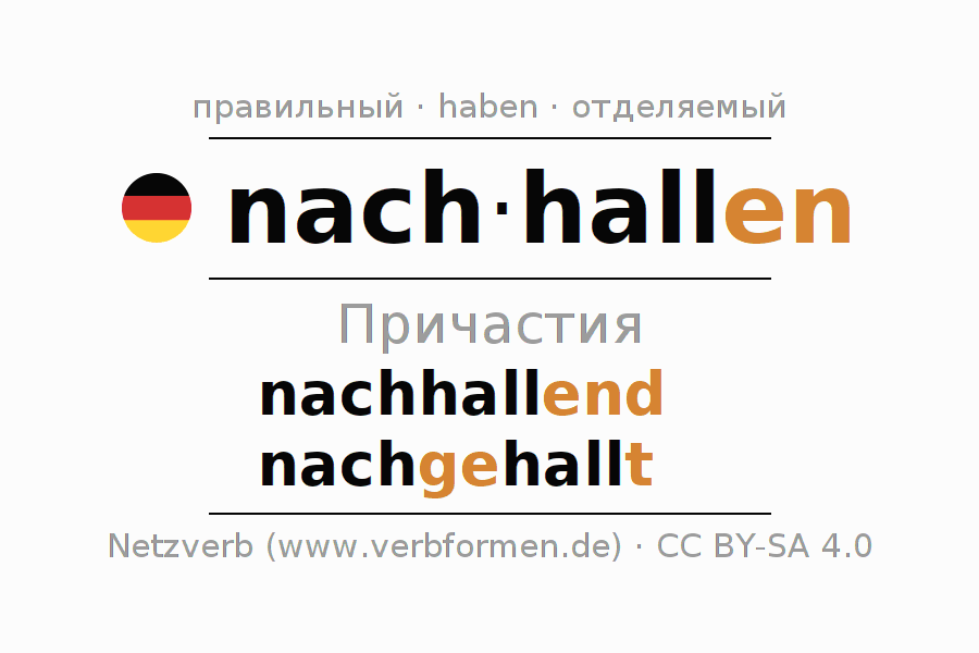 Формами причастия nachhallen (отголосок, звучание) являются: {PARTIZIP 1}, {PARTIZIP 2}