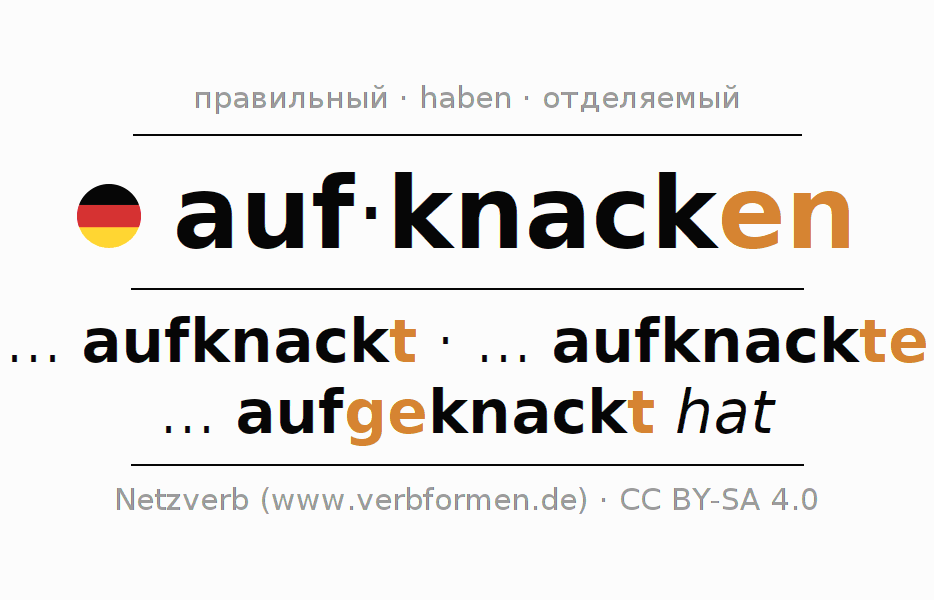 - Образование Презенс aufknacken