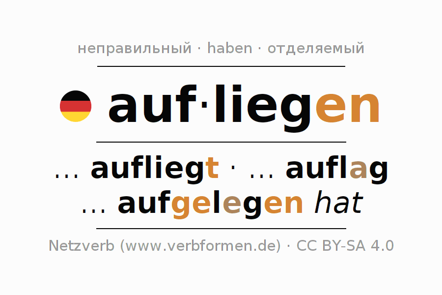 Этот глагол aufliegen (hat) полностью спрягается во всех лицах и числах Партицип Презенс Перфект.