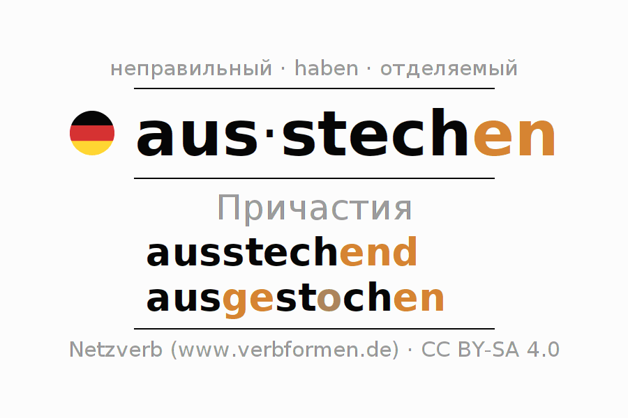 Этот глагол ausstechen полностью спрягается во всех лицах и числах Партицип Презенс Перфект.