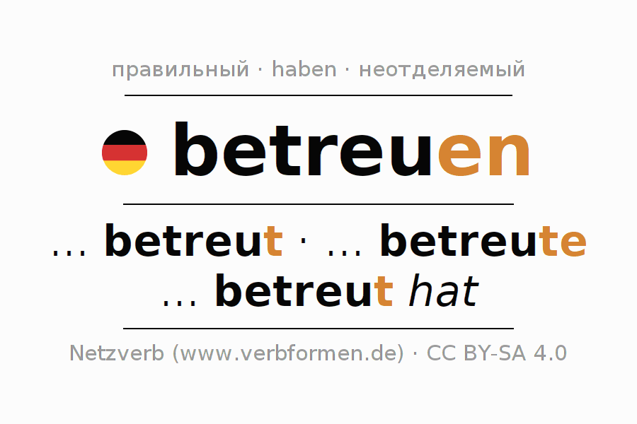 Примеры Действительный залог (актив) Партицип глагола betreuen