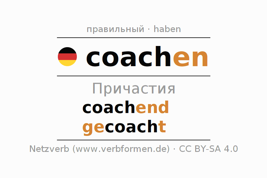 Примеры Действительный залог (актив) Партицип глагола coachen