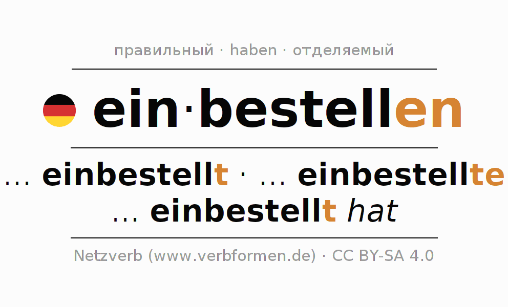 Примеры Действительный залог (актив) Партицип глагола einbestellen