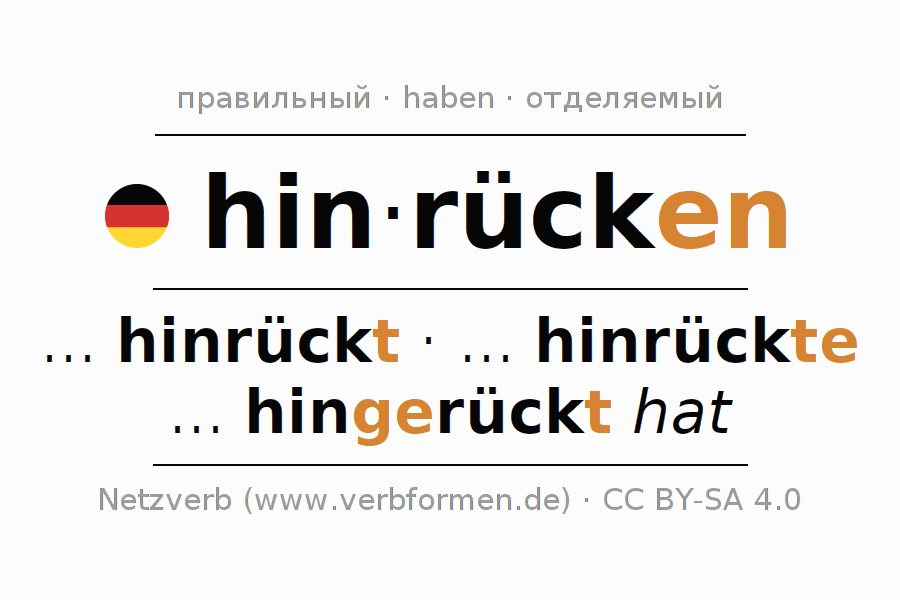 Этот глагол hinrücken (hat) полностью спрягается во всех лицах и числах Партицип Презенс Перфект.