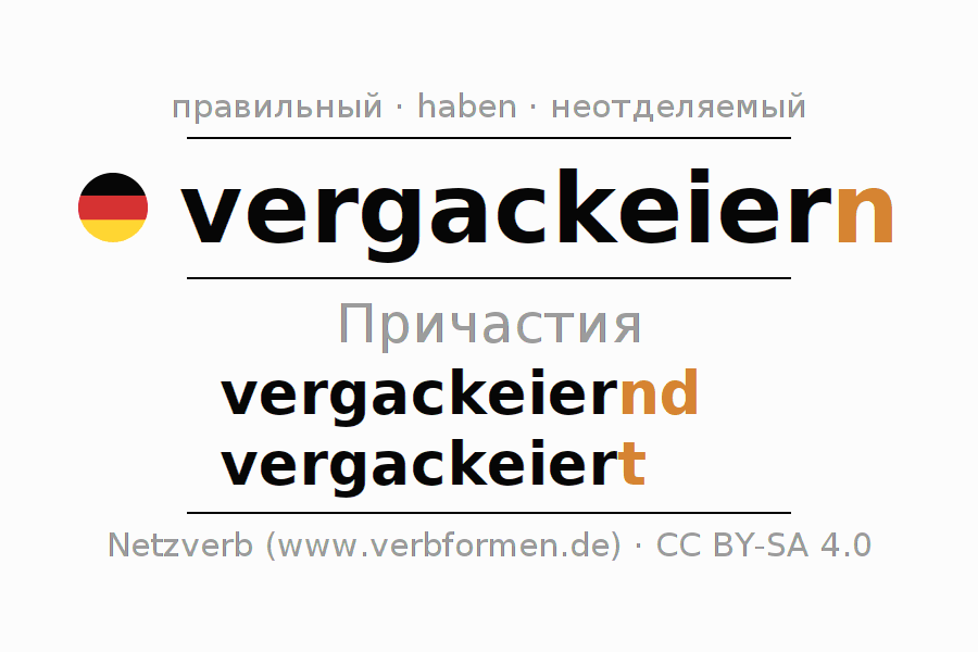 Этот глагол vergackeiern полностью спрягается во всех лицах и числах Партицип Презенс Перфект.