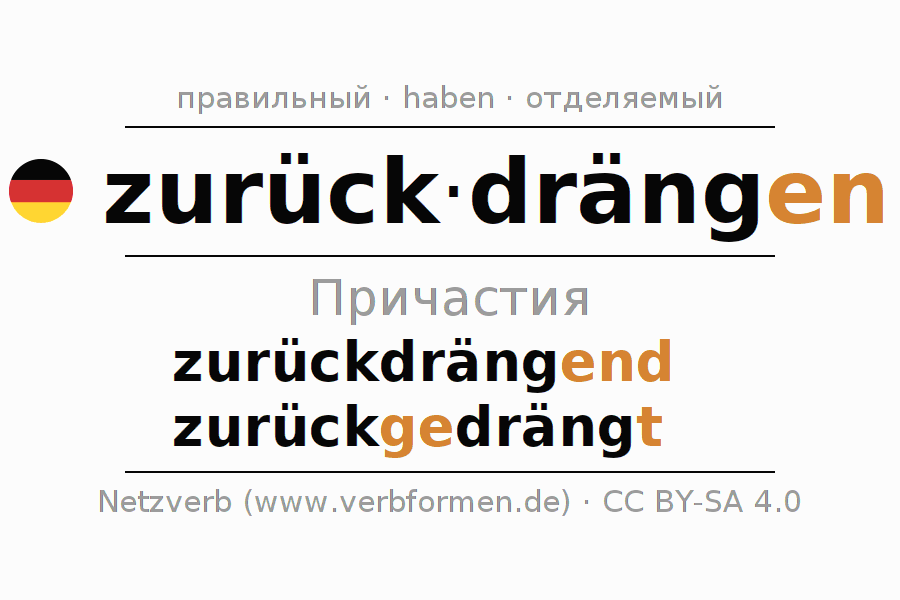 Этот глагол zurückdrängen (hat) полностью спрягается во всех лицах и числах Партицип Презенс Перфект.