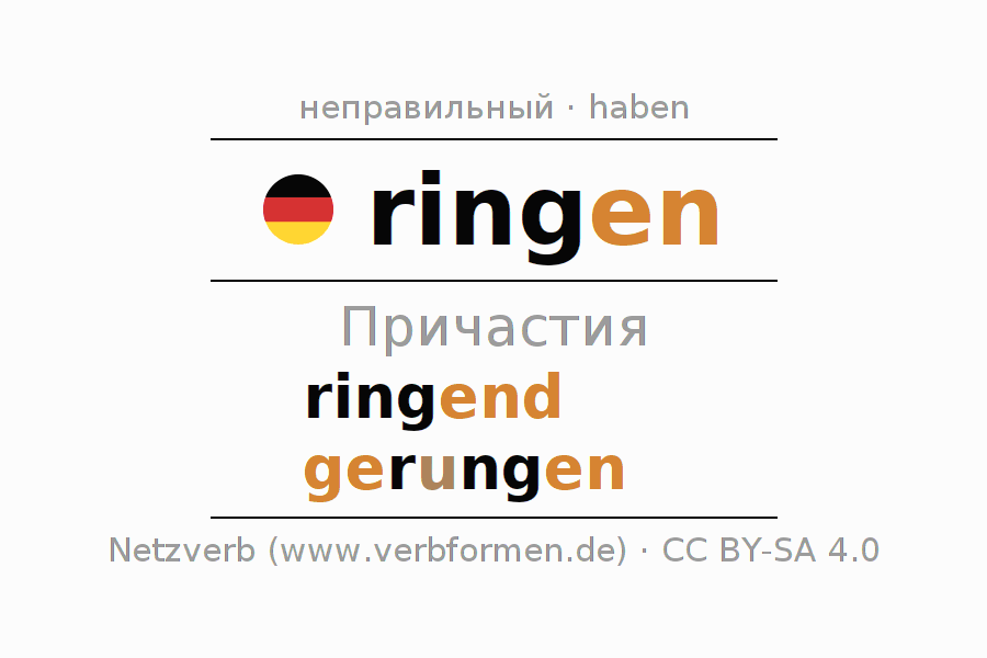 Примеры Действительный залог (актив) Партицип глагола ringen