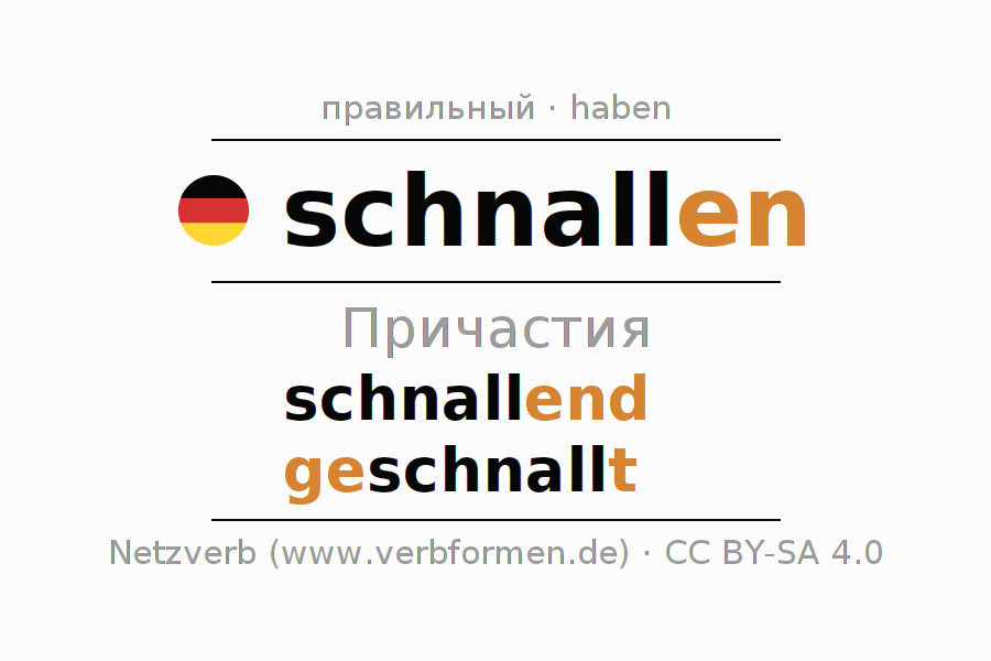 Формами причастия schnallen (понимать, закреплять) являются: {PARTIZIP 1}, {PARTIZIP 2}
