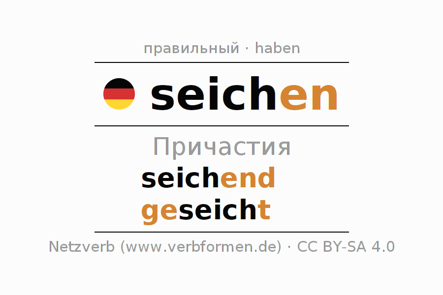 Формами причастия seichen (болтать, мочиться) являются: {PARTIZIP 1}, {PARTIZIP 2}