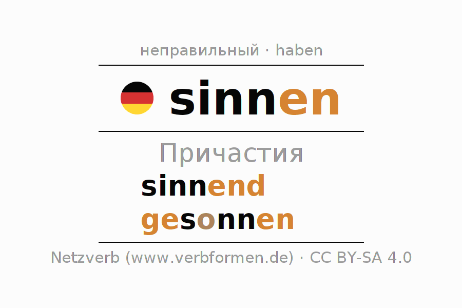 Формами причастия sinnen (думать, замышлять) являются: {PARTIZIP 1}, {PARTIZIP 2}