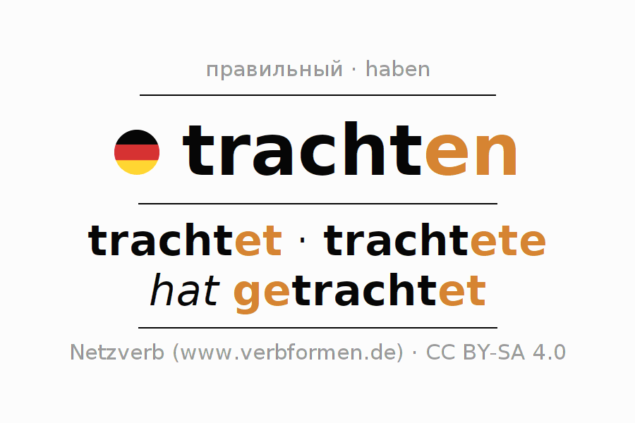 Формами причастия trachten (добиваться, стремиться) являются: {PARTIZIP 1}, {PARTIZIP 2}