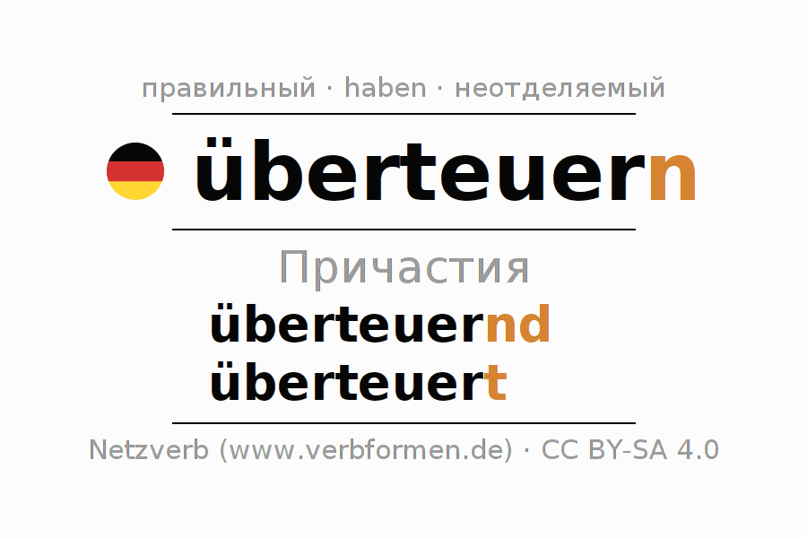 Этот глагол überteuern полностью спрягается во всех лицах и числах Партицип Презенс Перфект.
