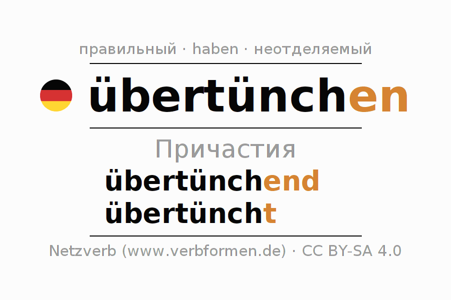 Формами причастия übertünchen (замазывать, закрашивать) являются: {PARTIZIP 1}, {PARTIZIP 2}
