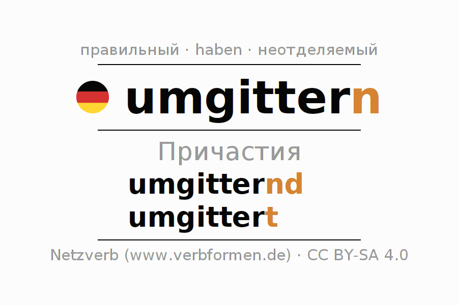 Этот глагол umgittern полностью спрягается во всех лицах и числах Партицип Презенс Перфект.