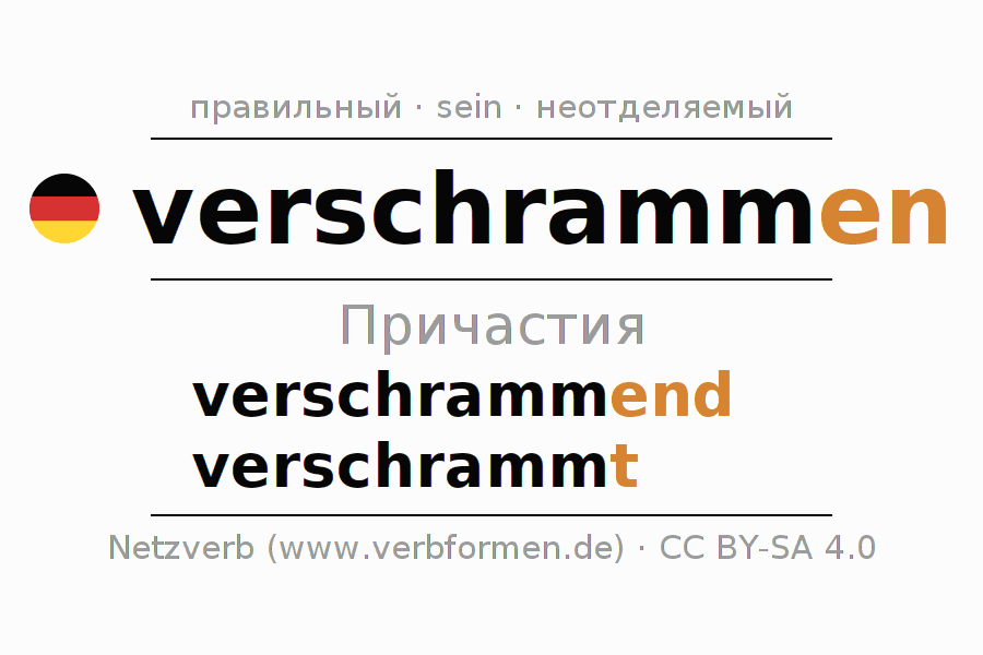 Формами причастия verschrammen (поцарапать, царапать) являются: {PARTIZIP 1}, {PARTIZIP 2}
