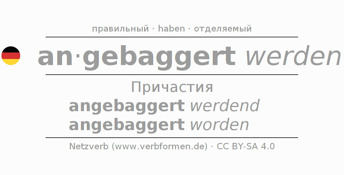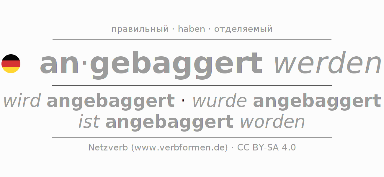 Этот глагол anbaggern полностью спрягается во всех лицах и числах Партицип Презенс Перфект.
