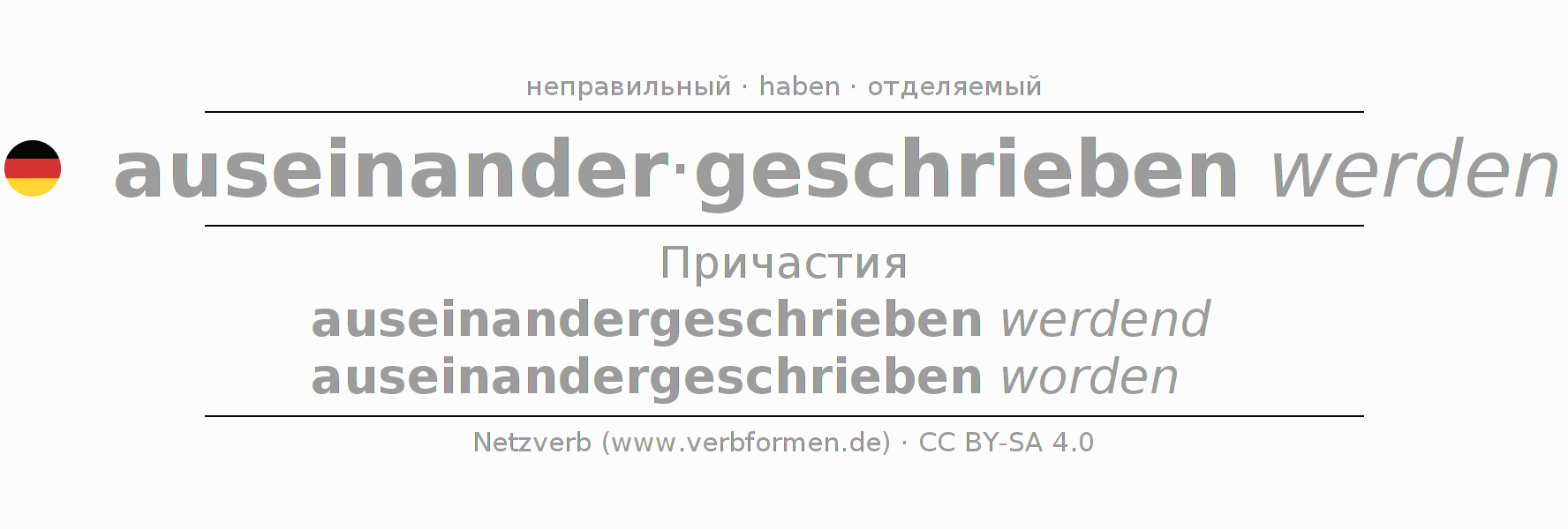 Глагольные формы в Партицип auseinanderschreiben